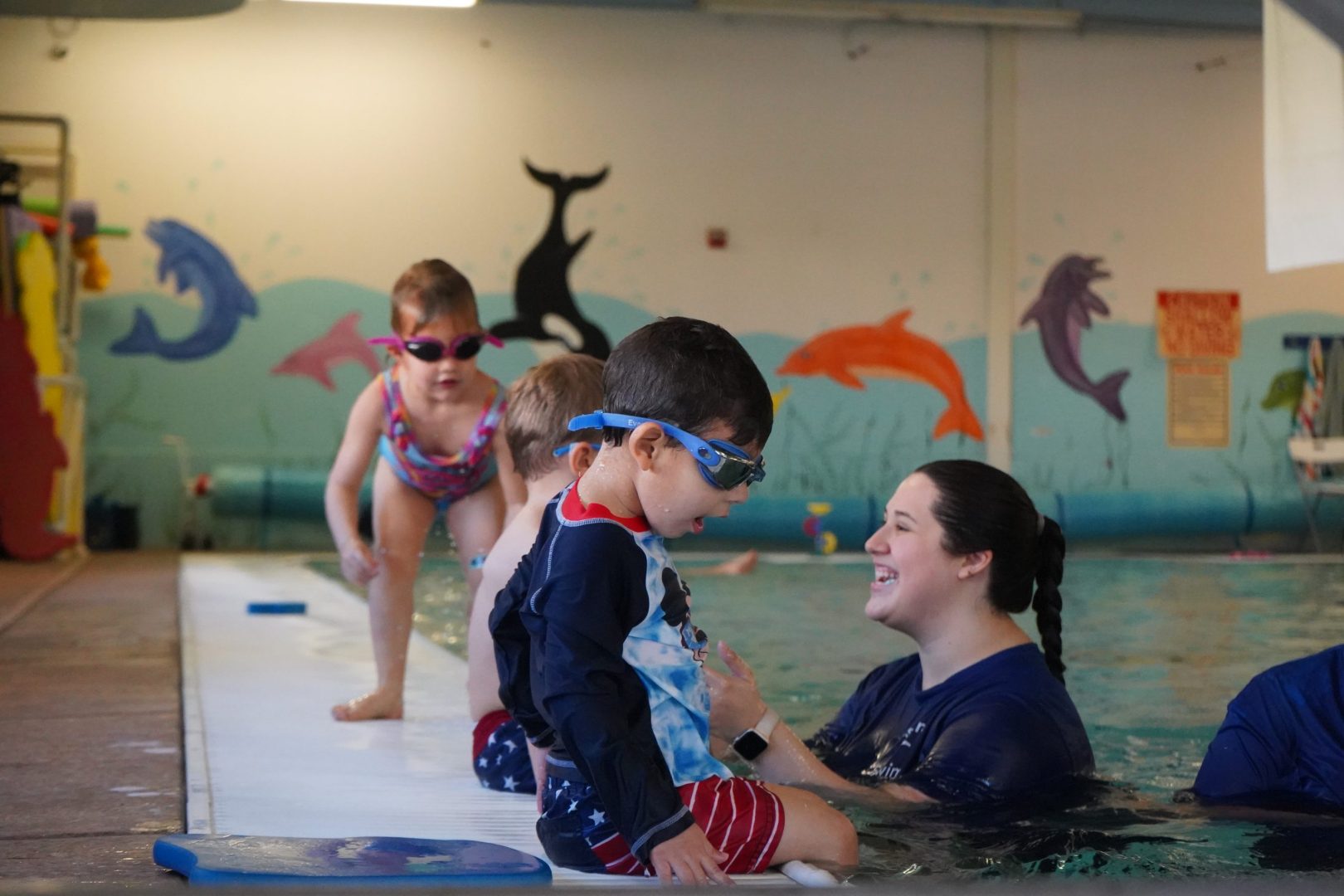 Guppies – Beginning is perfect for young swimmers ready to start their journey. To qualify, students must be able to stand independently in the water without parental assistance. Prior swimming experience is not required. In this class, children focus on essential water safety skills, beginning freestyle, and backstroke techniques. Many students in Guppies – Beginning overcome early fears, build water confidence, and gain important foundational swimming skills that will set them up for long-term success.